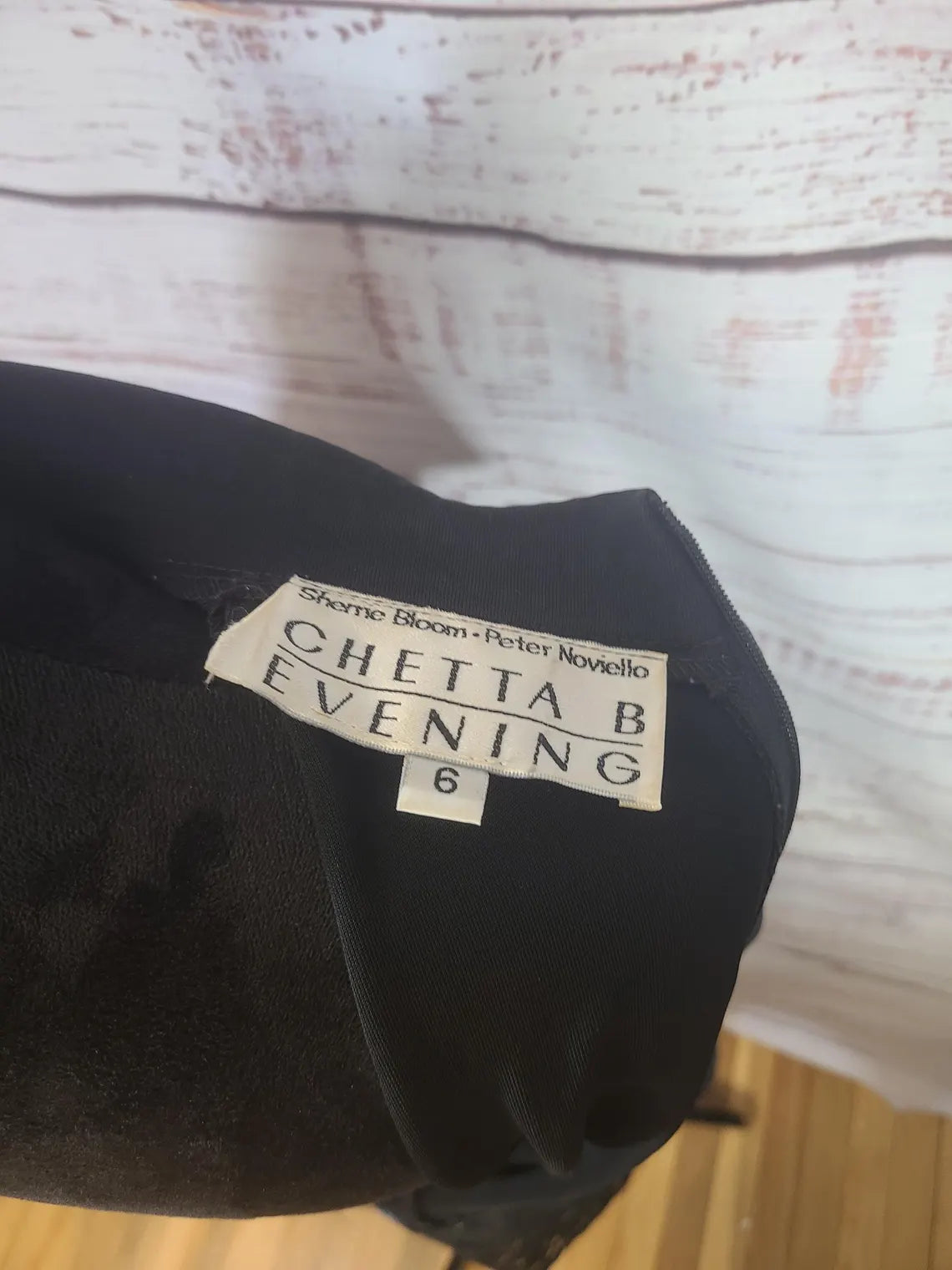 Chetta B Black Rhinestone Mock Neck Dress | Size 6