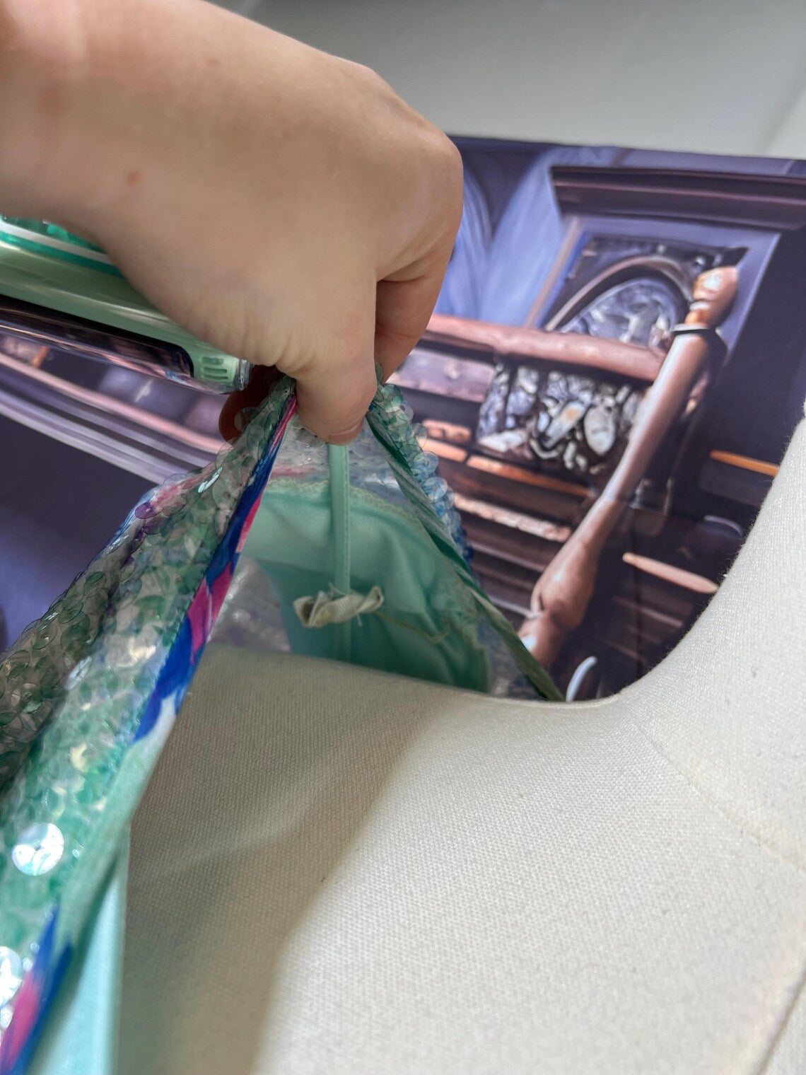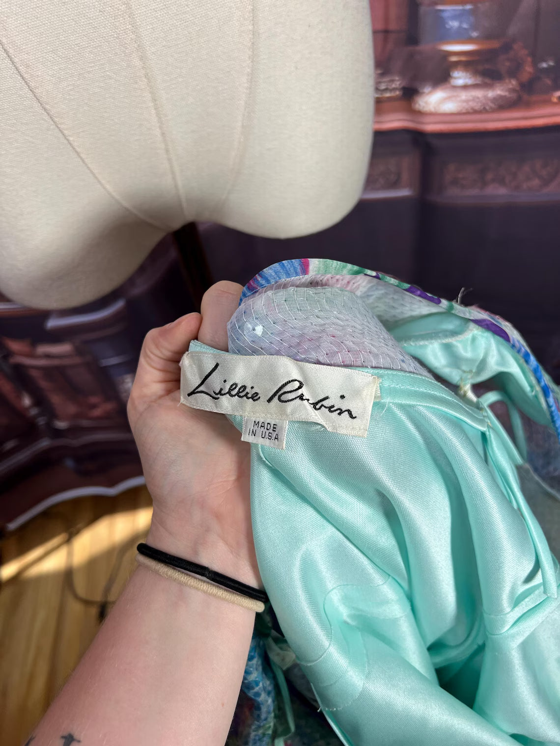 Spin, shine, repeat ✨ Vintage Lilly Rubin made-in-USA dress, size 6 (bust 38”, waist 40”, length 40”) with the most jaw-dropping pastel sequin overlay and ruffled layered skirt. Serious party energy in union-made glam.